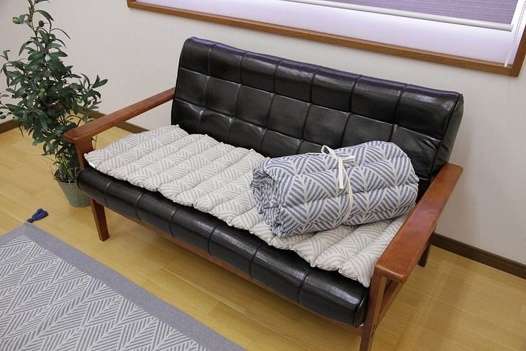 長座布団やごろ寝クッション、くるくる丸めて枕など使い方は自由自在!紐付きなので、丸めて留めることができます。
