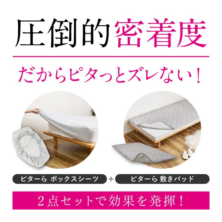 実用新案取得、ズレない、敷きパッド、ボックスシーツ、セット、PITARA、ピタ―ら、ゴムなし、ずれない、置くだけ、シーツ