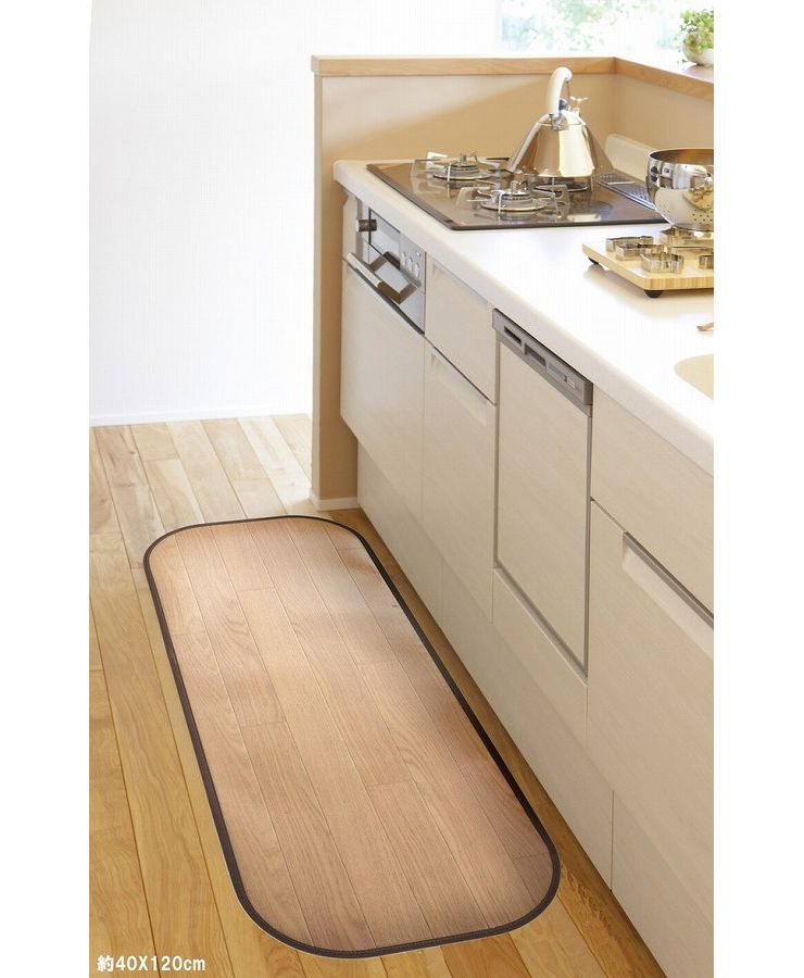 消臭・抗菌・撥水の機能をあわせもつ家族みんなにやさしい高機能な木目調フリーマット。水分が染み込まない素材なので、汚れがちなキッチンでもサッとひと拭きできれいに。水まわりの掃除が簡単で楽になるようサポート。さらにフローリングのような深い溝がないのも掃除がしやすいポイントです。4層構造による厚み約1.8mm(縁を除く)でほどよいクッション性があります。滑り止めシート4枚付きだからズレ対策も安心です。 サイズ:約45×150cm カラー:LBE 組成:表面:塩化ビニル樹脂