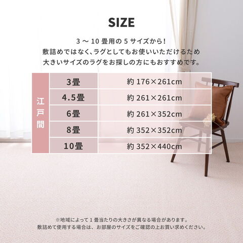 敷詰めではなく、ラグとしてもお使いいただけるため、大きいサイズのラグをお探しの方にも◎