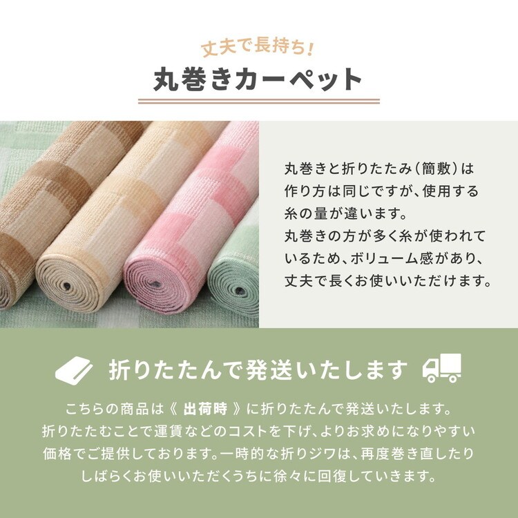 ペットの爪がひっかかりにくい短めのカット&ループパイルでレトロなデザインがおしゃれなカーペット。色合いも明るく、子供部屋やリビングなど、お部屋のイメージを変えたい方におすすめです。単色ながら、ハイカット、ミドルループ、ローループと3段構成で立体感がありタッチ感も楽しめます。