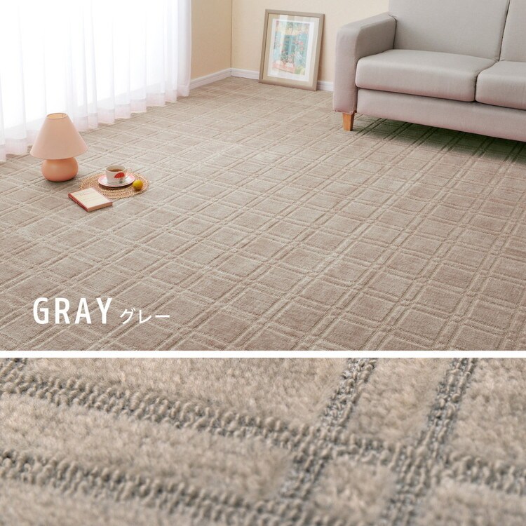 日本製 抗菌敷き詰めカーペット シオン 江戸間3畳 176×261cm フリーカット 格子柄 タフトカーペット 抗菌 防臭 平織リ ラグマット 萩原 おしゃれ ラグ 絨毯 北欧 モダン 市松模様 和室【送料無料】