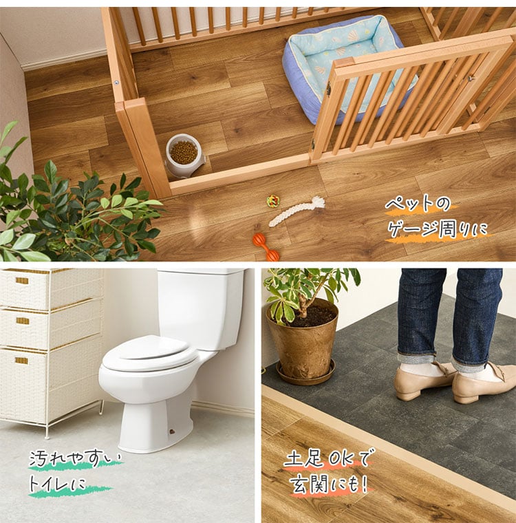 【ペットもOK】 日本製 クッションフロア 90×100cm 滑りにくい 消臭 抗菌 キズが目立たない お掃除簡単 床暖房OK 玄関 廊下 リビング ケージ周り 犬 猫 ペット カーペット ラグ おしゃれ【送料無料】