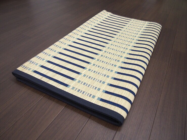 サイズ:江戸間3帖カラー名:ブルー組成:表面:い草100%縁:綿100%洗濯:不可原産国:中国