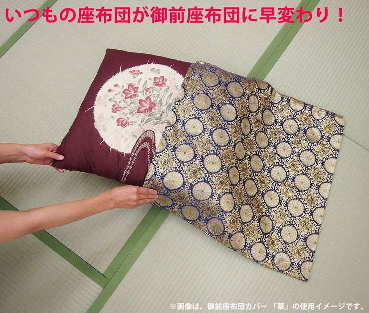 通常使っている座布団に、このカバーをつける事で御前座布団として使うことができる便利な座布団カバーです。