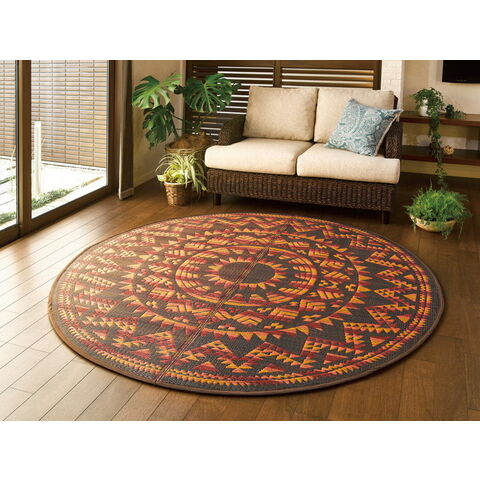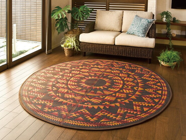 い草センターラグ(裏貼り) アステカ 直径 約180cm BR【送料無料】