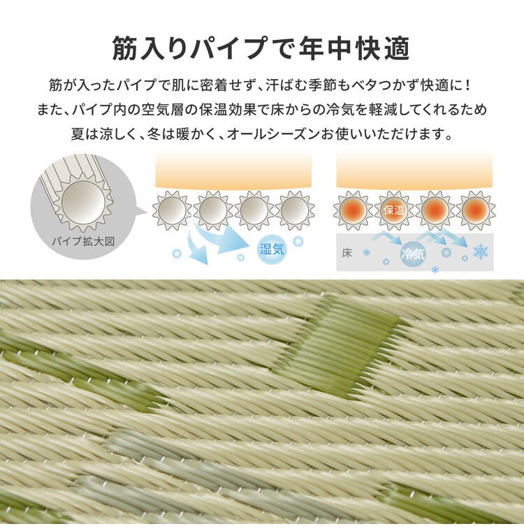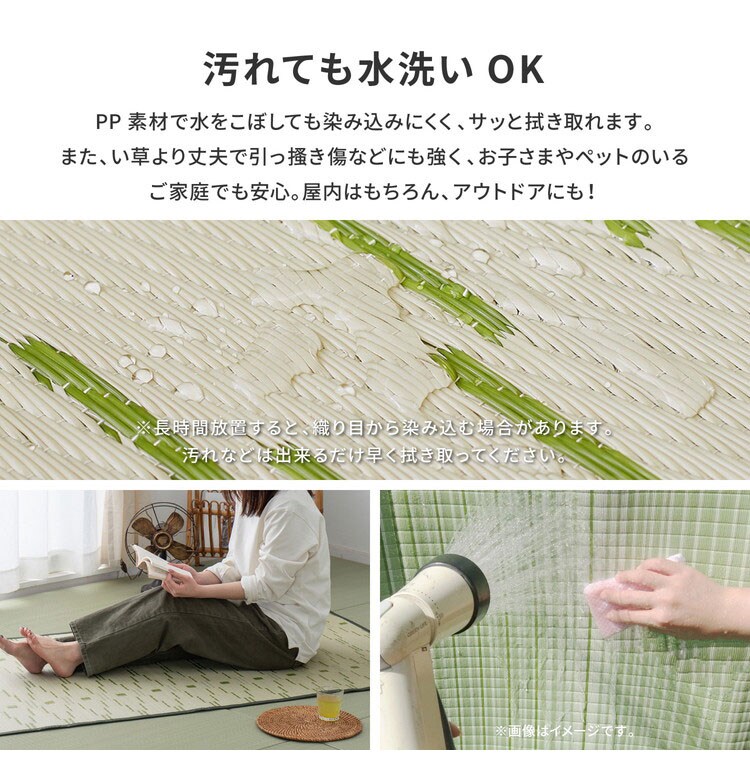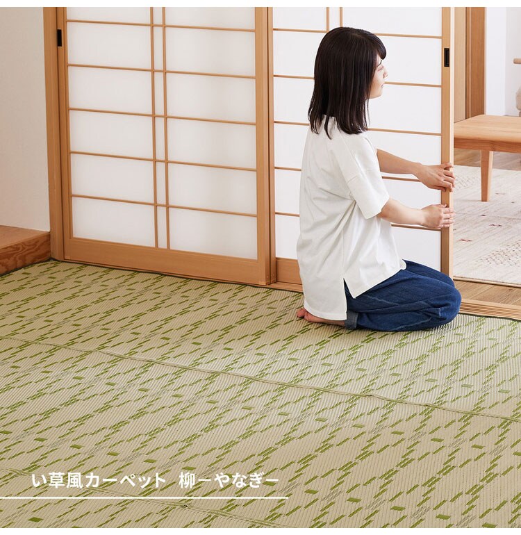 洗える い草風カーペット 柳 江戸間8畳 348×352 花ござ 洗えるラグ 柄上敷き PP素材で水に強い 屋内 屋外 レジャーシート 和風 和モダン シンプル おしゃれ【送料無料】
