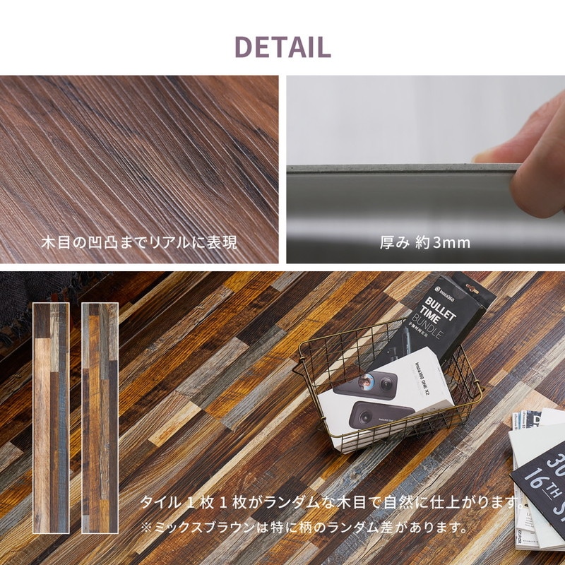 【サイズ】約91.4×15.2cm (厚み約3mm) 72枚入り(約6畳分)