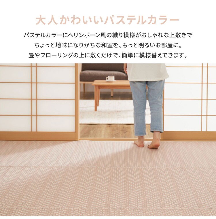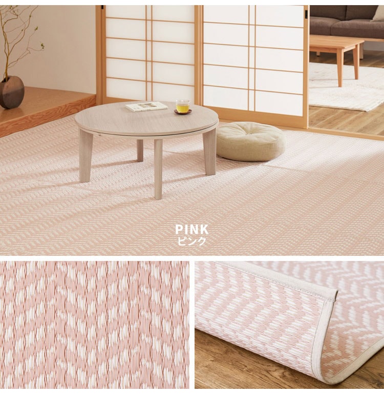 大人かわいい 洗える い草風カーペット パスラッシュ PP 江戸間10畳 348×440 花ござ 洗えるラグ 柄上敷き PP素材で水に強い 屋内 屋外 レジャーシート おしゃれ【送料無料】