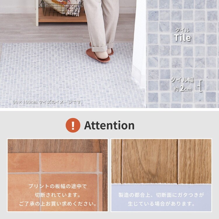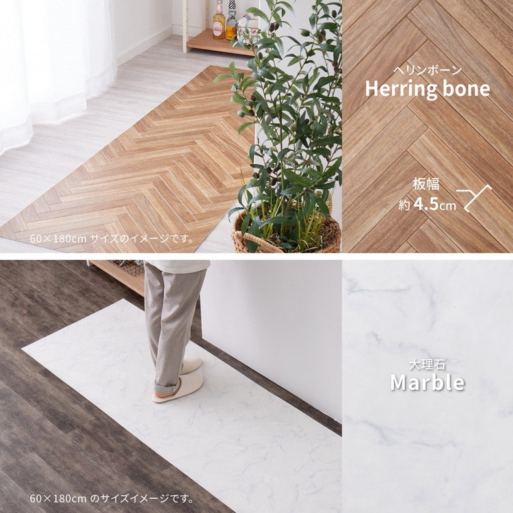 日本製 防炎 抗菌 防カビ 水拭きできるクッションフロアII 60×180 キッチンマット 拭ける フロアシート フローリングマット DIY 大理石 木目 タイル柄 おしゃれ【送料無料】