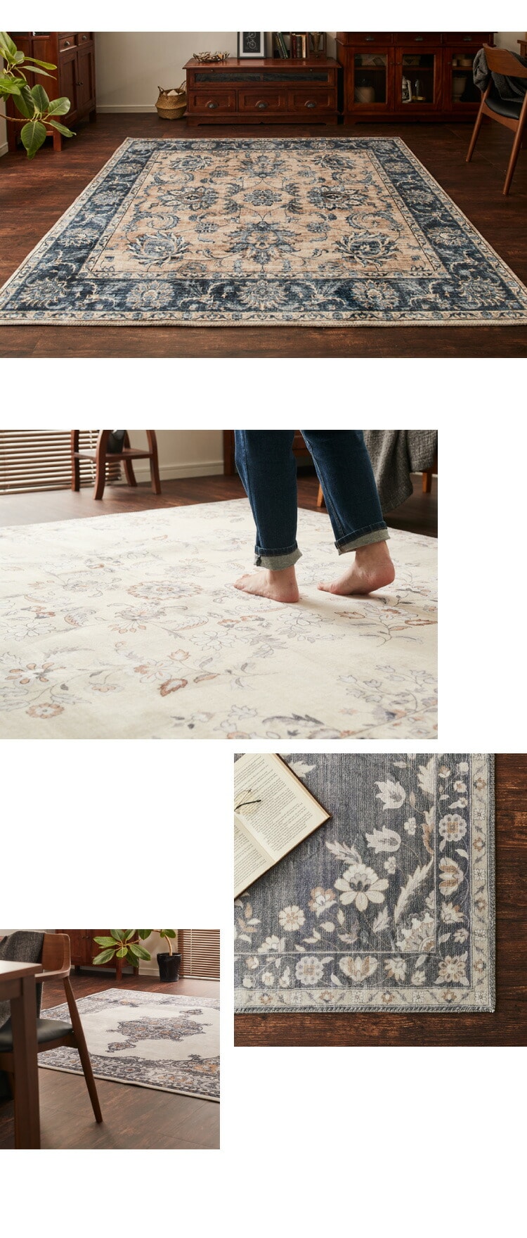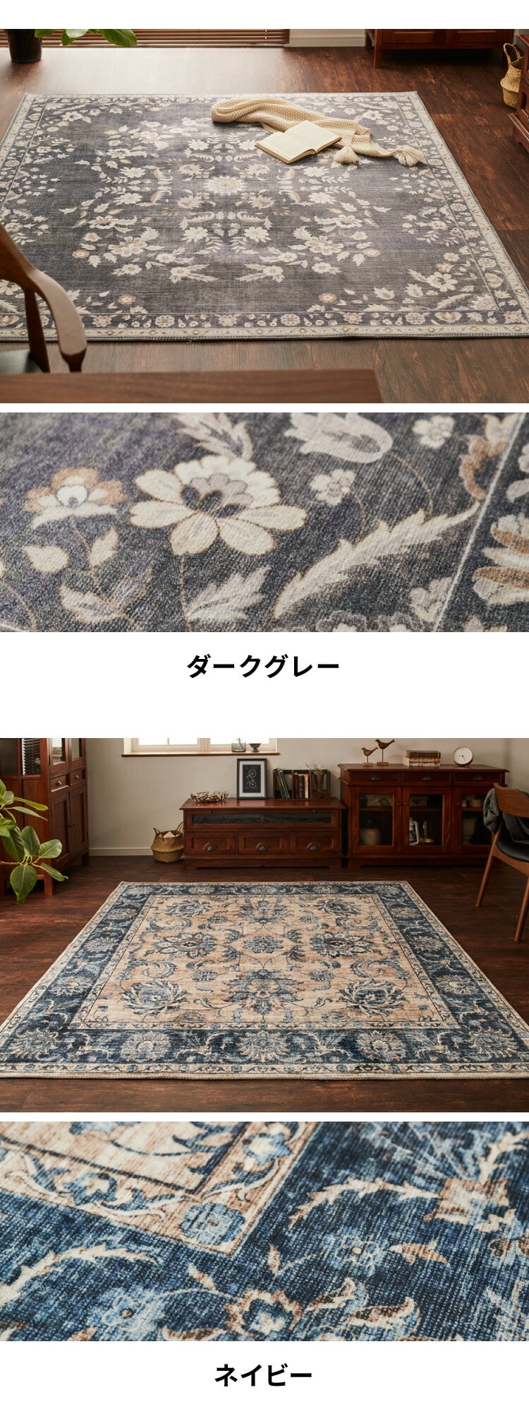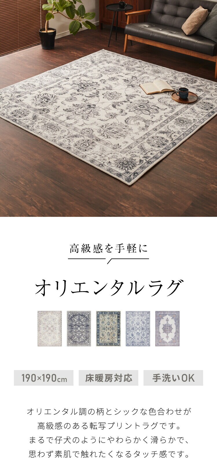 洗えるラグ 190×190cm オリエンタル柄 シャビー シック カーペット ペルシャ絨毯風 デザインラグ ソフトフランネル ラグマット ホットカーペット・床暖房OK 可愛い【送料無料】