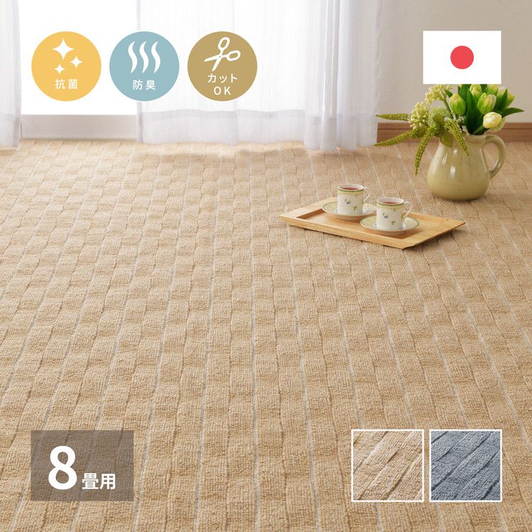 日本製 抗菌カーペット メテオ 江戸間8畳 約352×352cm 抗菌 防臭 無段階ループ タフトカーペット 平織り 敷き詰めカーペット ラグマット 萩原 おしゃれ ラグ 絨毯 北欧 モダン ストライプ ホテル【送料無料】