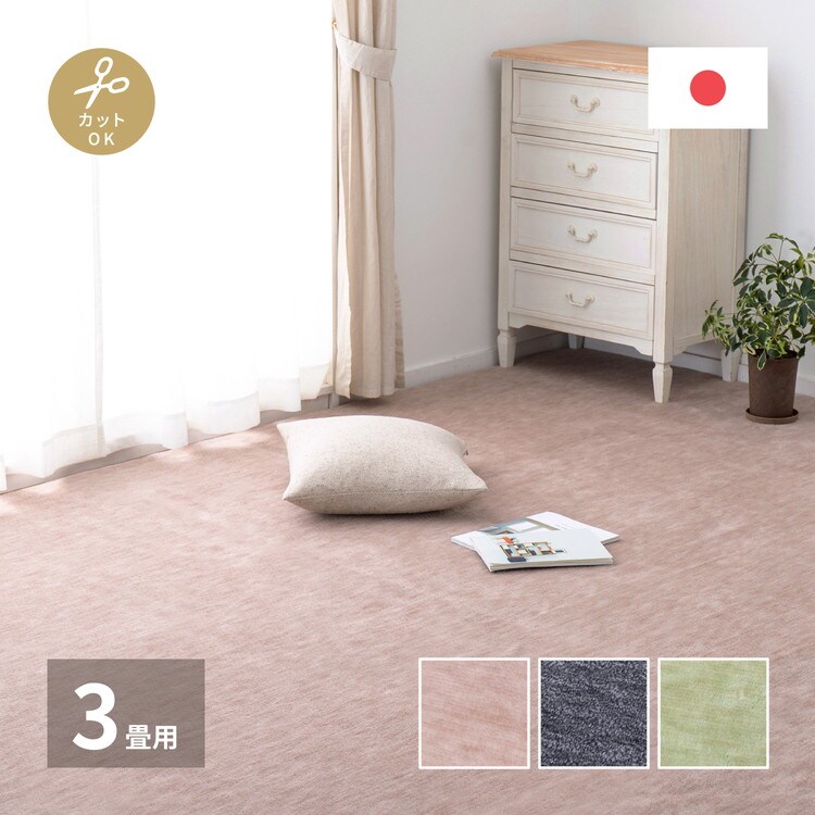 日本製 敷き詰めカーペット ラウム 江戸間3畳 約176×261cm フリーカット ペット 爪が引っかかりにくい タフトカーペット 平織り ラグマット 萩原 おしゃれ ラグ 絨毯 北欧 モダン 無地【送料無料】