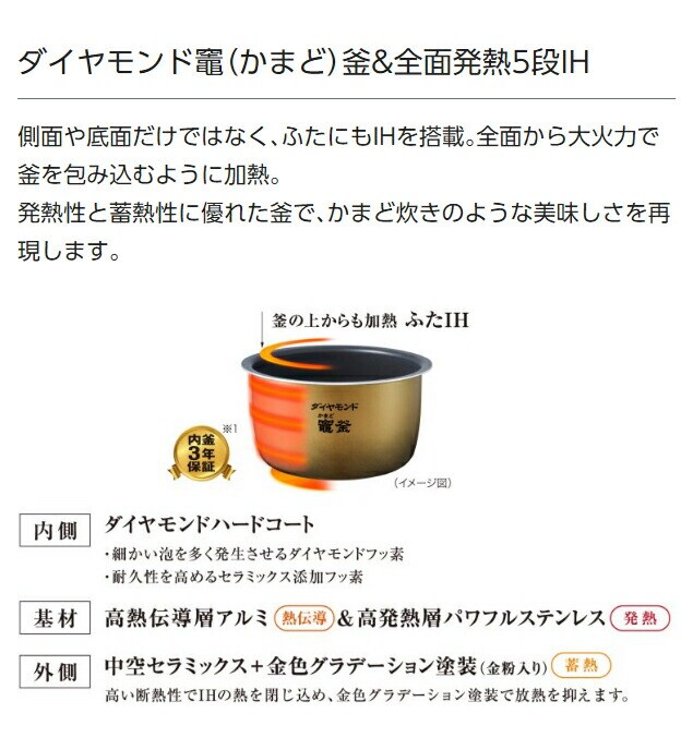 炊飯:加熱方式:5段全面IH