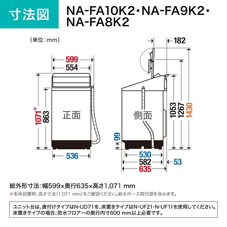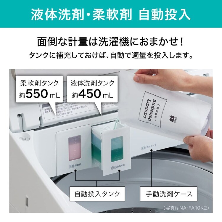 パナソニック Panasonic 全自動洗濯機 10kg 液体洗剤 柔軟剤 自動投入 アプリ連動 パワフル立体水流 次亜除菌コース スゴ落ち泡洗浄 NA-FA10K2-N【送料無料】