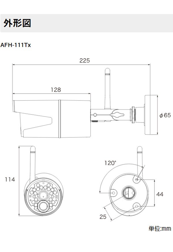 *カメラ最大消費電力:8W(赤外線点灯時)カメラ外径寸法:Φ65×D127.5mm