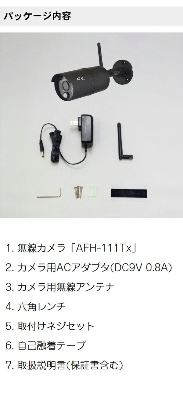 防犯カメラ ワイヤレス 無線 屋外 家庭用 簡単 設置 高画質 200万画素 AFH-101専用増設カメラ AFH-111Tx キャロットシステムズ【ポイント10倍】 【送料無料】
