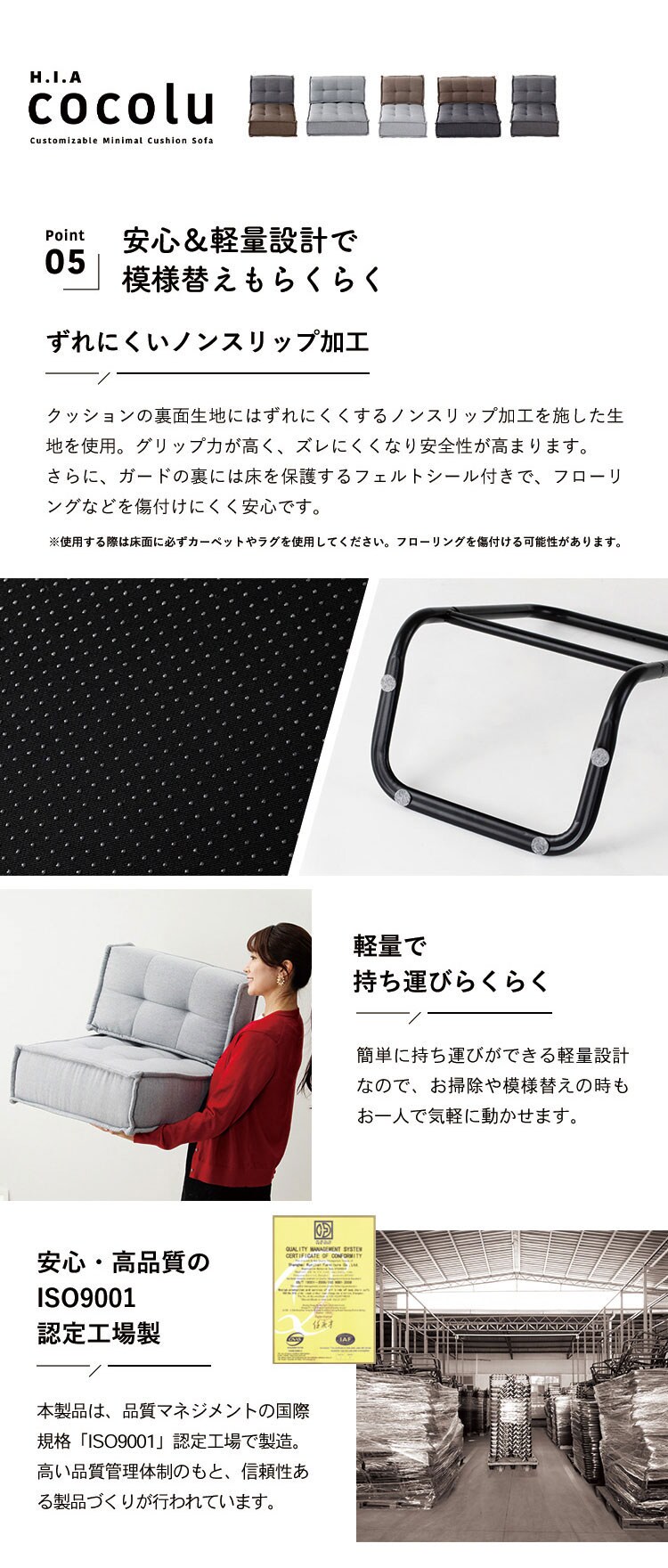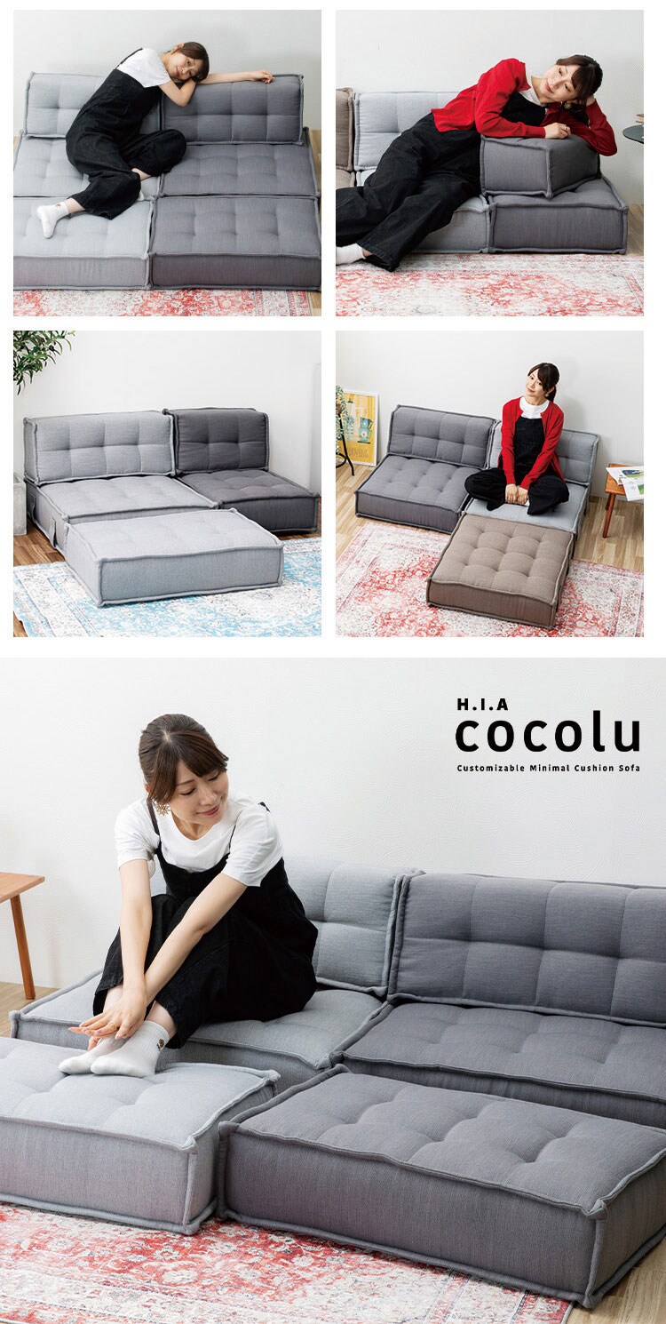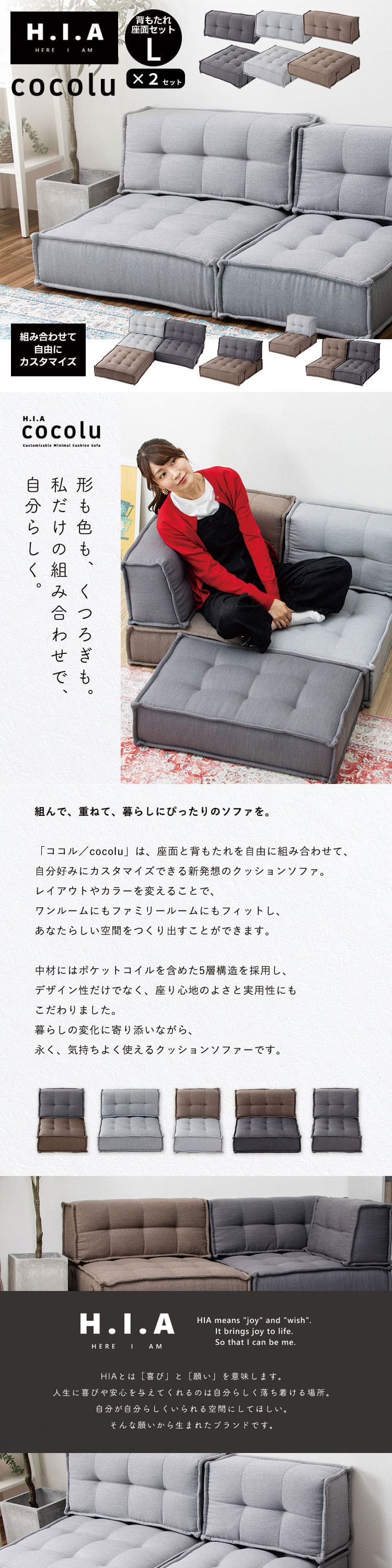 HIA カスタマイズできるミニマルクッションソファ- Lサイズ 座面+背面 セット×2 フロアクッション フロアソファー 組み合わせ自由 コンパクト 低反発 ローソファー ソファ ポケットコイル【送料無料】