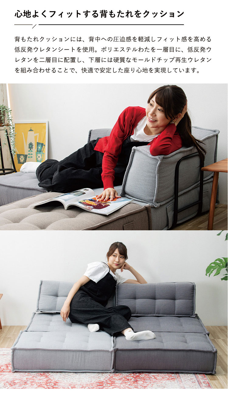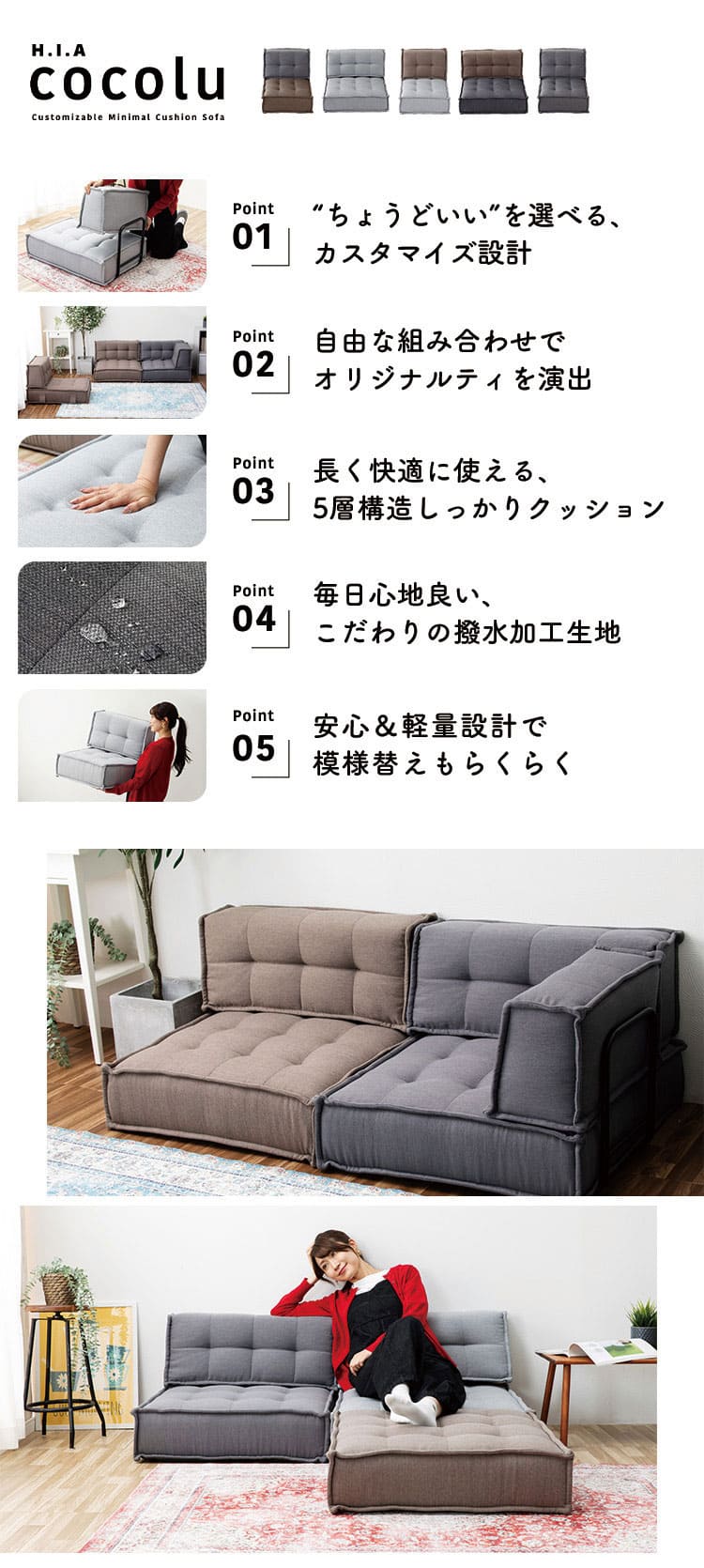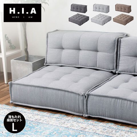 HIA カスタマイズできるミニマルクッションソファ- Lサイズ 座面+背面 セット フロアクッション フロアソファー 組み合わせ自由 コンパクト 低反発 ローソファー ソファ ポケットコイル【送料無料】