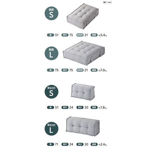 ※この商品ページはミニマルクッションソファーLサイズセット(座面×1、背面×1)の商品ページです。