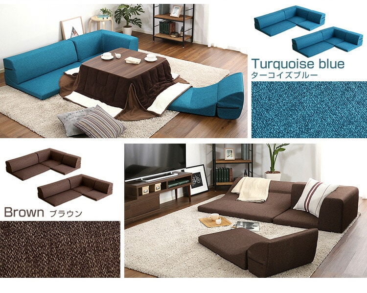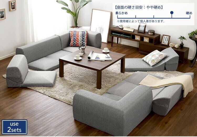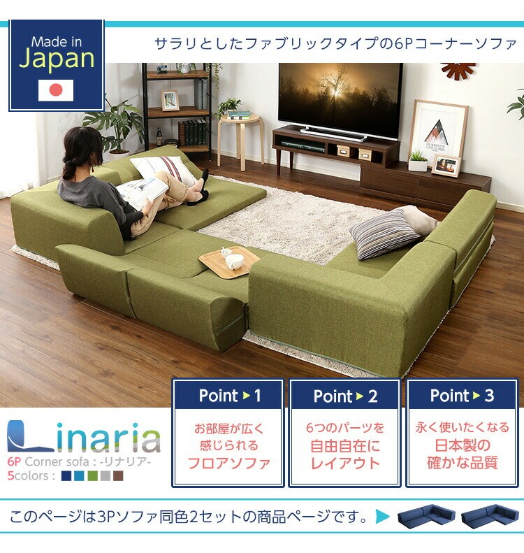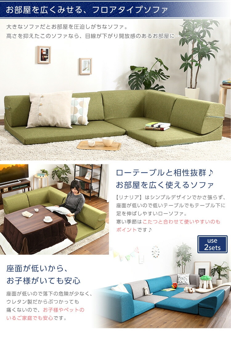 コーナーフロアソファ ロータイプ ファプリック 3人掛け(5色)同色2セット|Linaria-リナリア-