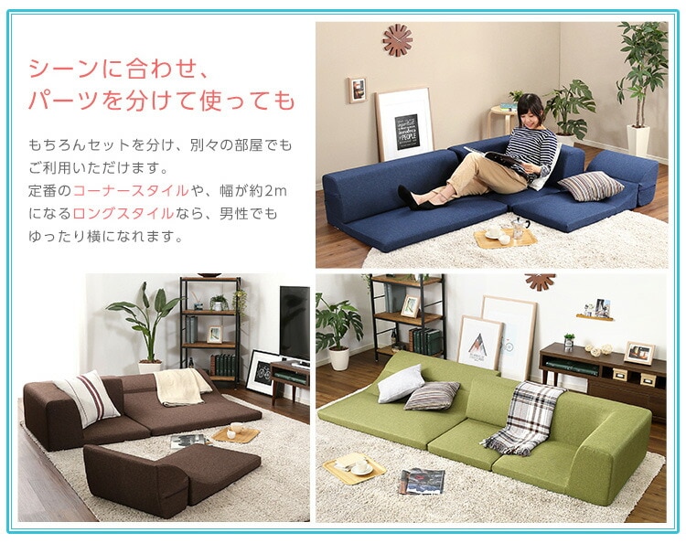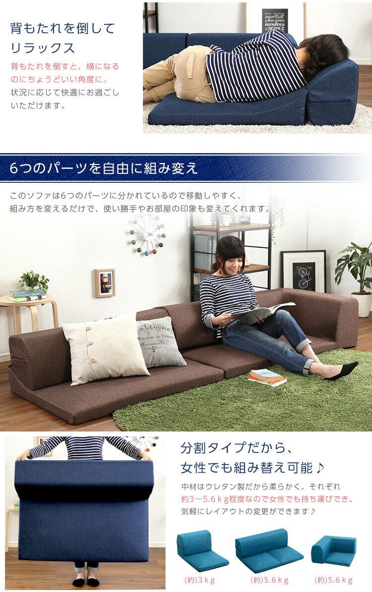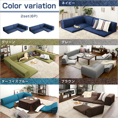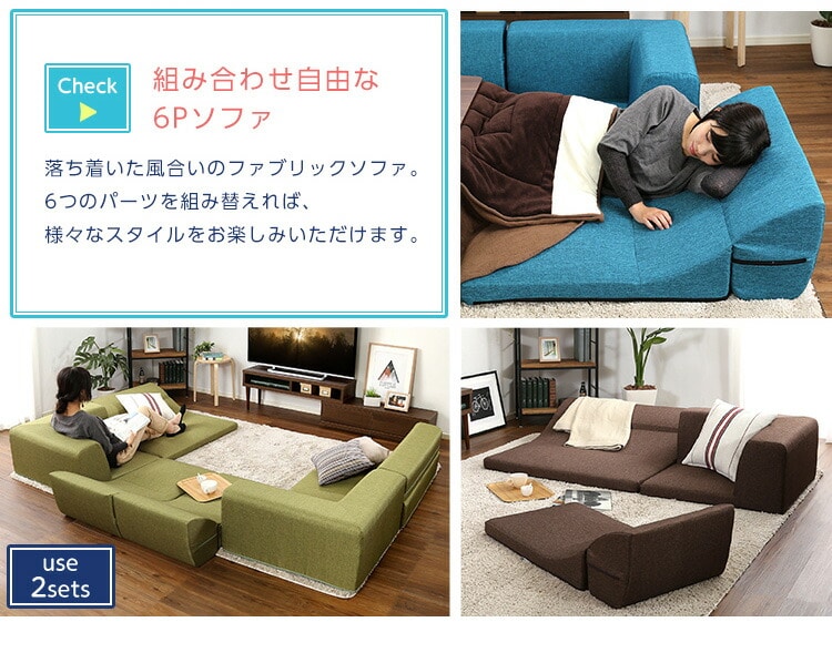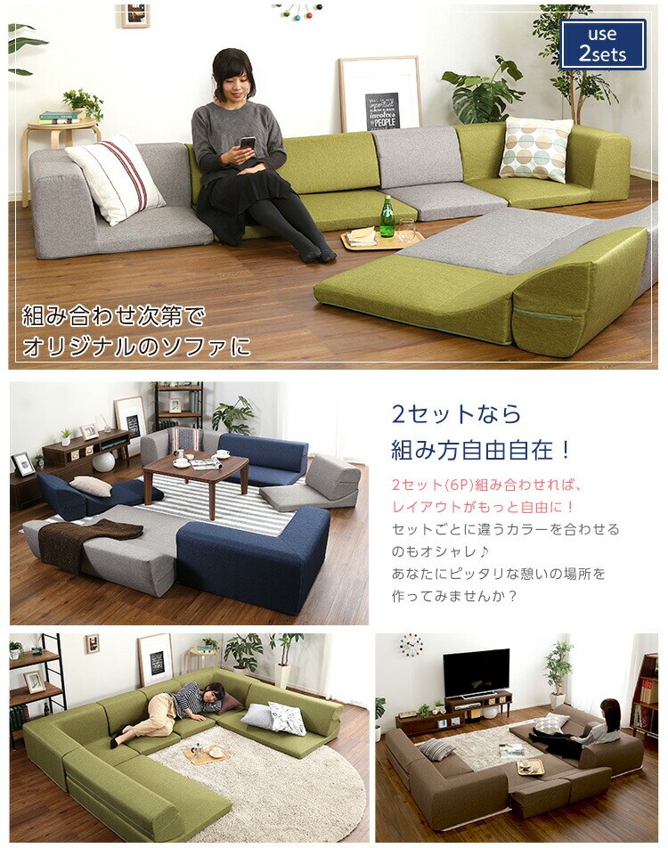 日本製 フロアソファ ソファ 6点セット 六点セット ローソファ 国産 組み換え可能 カウチソファ ロースタイル おしゃれ かわいい (送料無料) (代引不可)