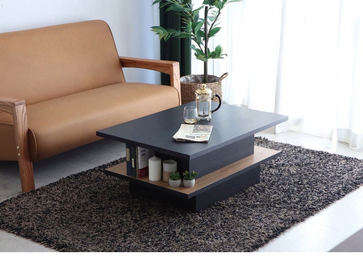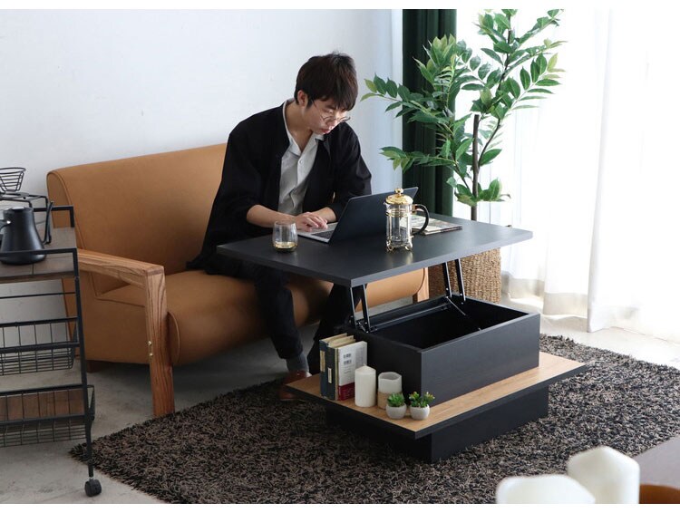 ソファに座りながら仕事ができる、昇降式のリビングテーブル。