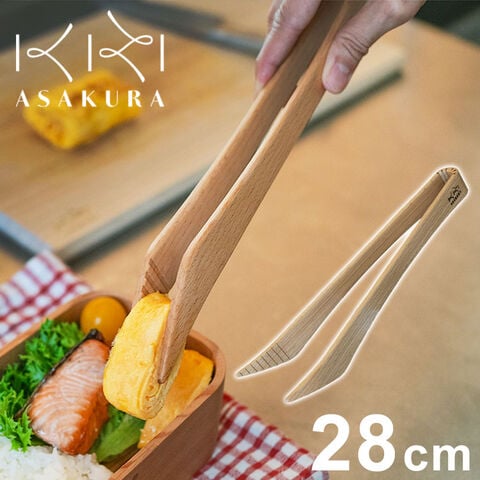 ASAKURA 毎日トング 28cm 炒める・混ぜる・つかむ 木製 日本製 キッチンツール 軽量 軽い 新潟県産ブナ 天然木 トング ヘラ 菜箸 曲木 木製トング 朝倉家具 1個 ASAKURAの雑貨【送料無料】