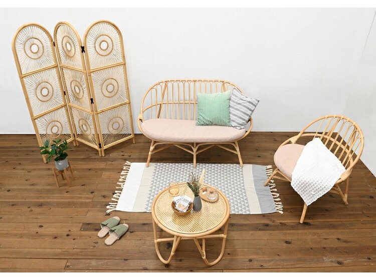 籐素材ですので軽量なのも特徴でレイアウトを変える際や、お掃除も簡単にすることが出来ます。