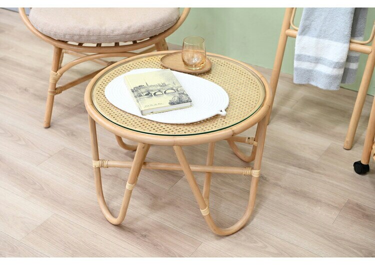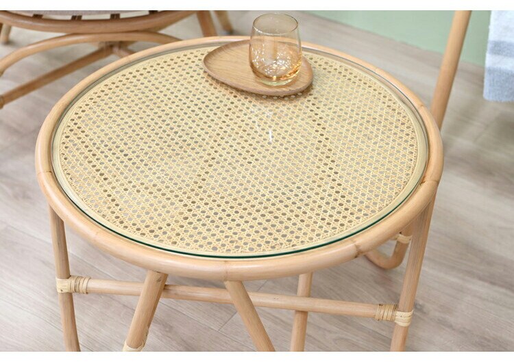 ラタンテーブル 円形 直径50cm 木製 ガラス おしゃれ センターテーブル ローテーブル 韓国 インテリア 北欧 シンプル リビング ダイニング ラウンドテーブル 丸型 ナチュラル【送料無料】