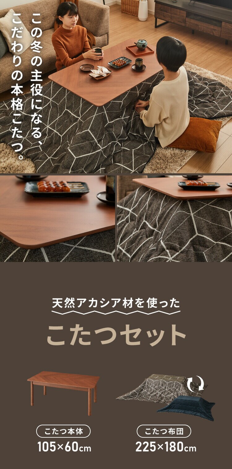 こたつ2点セット こたつテーブル こたつ布団 長方形 幅105cm 高さ調節可能 節電 省エネ こたつテーブル ローテーブル インテリア 食卓 座卓 北欧 インテリア リビング ダイニング【送料無料】
