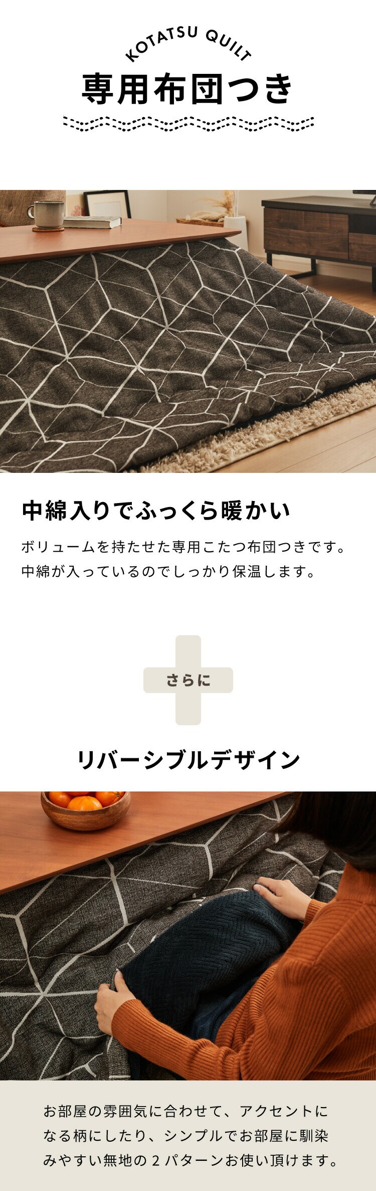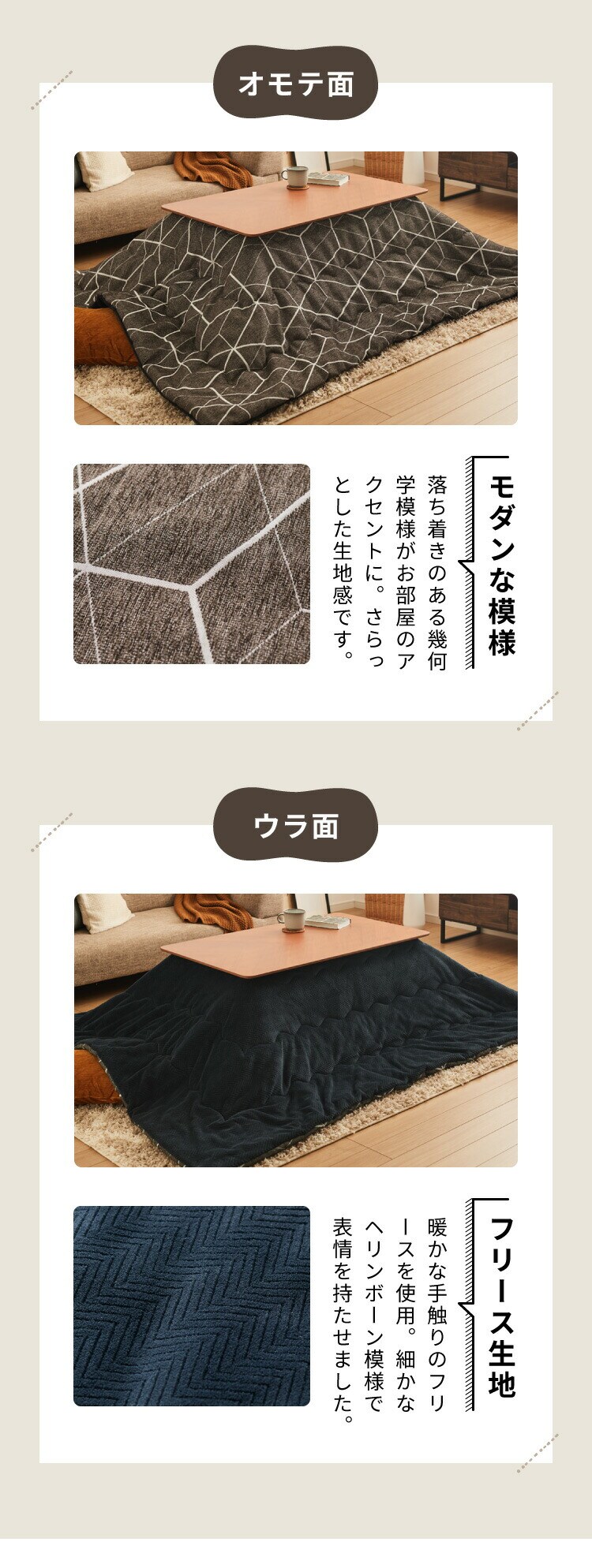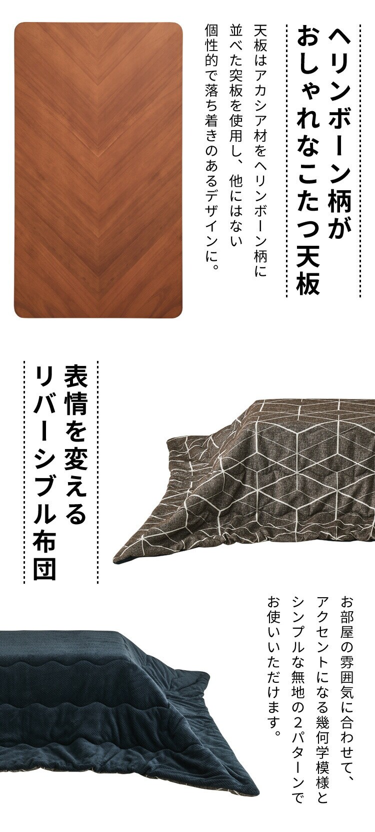 ヘリンボーン柄がおしゃれなこたつ。