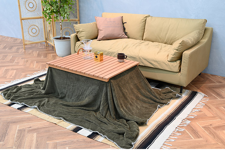 おうちでキャンプ気分を感じられるアウトドア風こたつ。