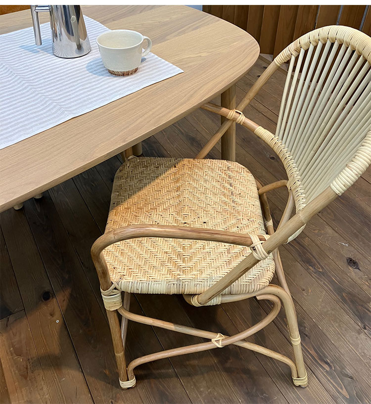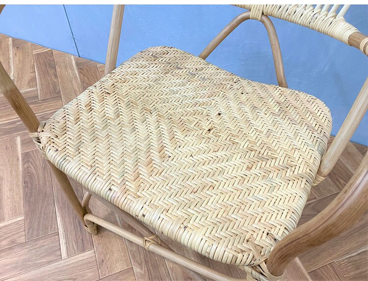座面も職人が丁寧に編み込んだ味わいのあるデザインとなります。サイズ感も一般的なダイニングに合わせられるので、ダイニングチェアとして使い勝手の良いチェアです。