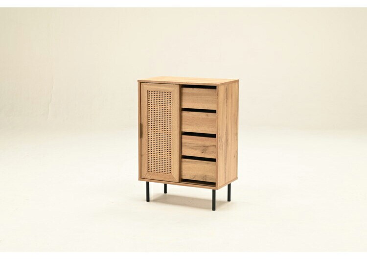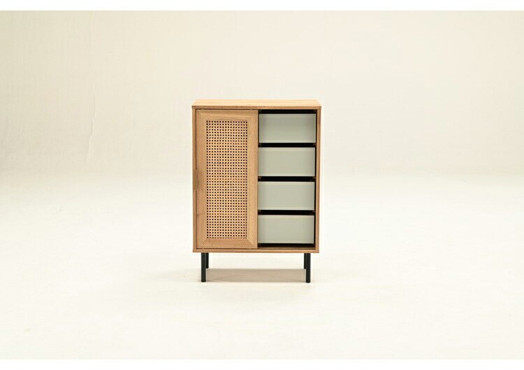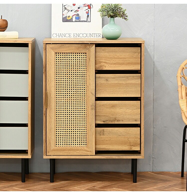 天然ラタンを使用した異素材ミックスのチェスト。