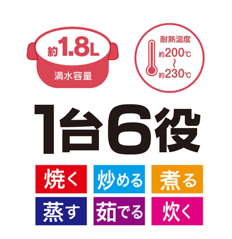 焼く・炒める・煮る・蒸す・茹でる・炊くがこの1台で