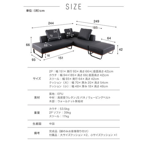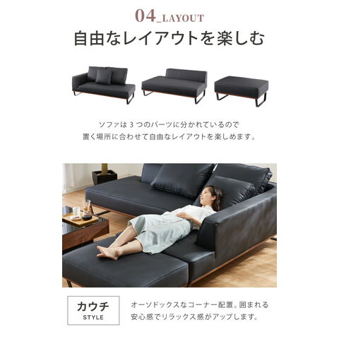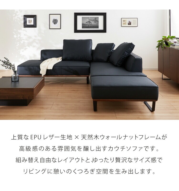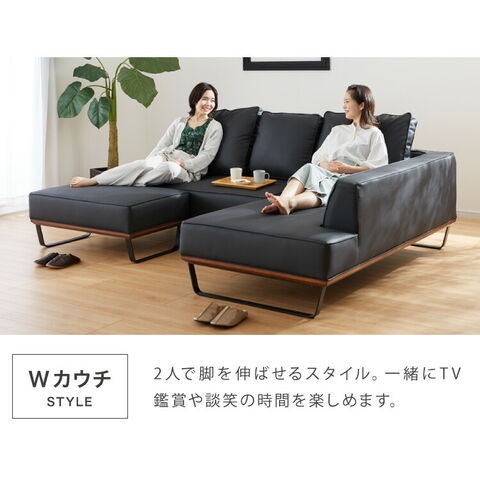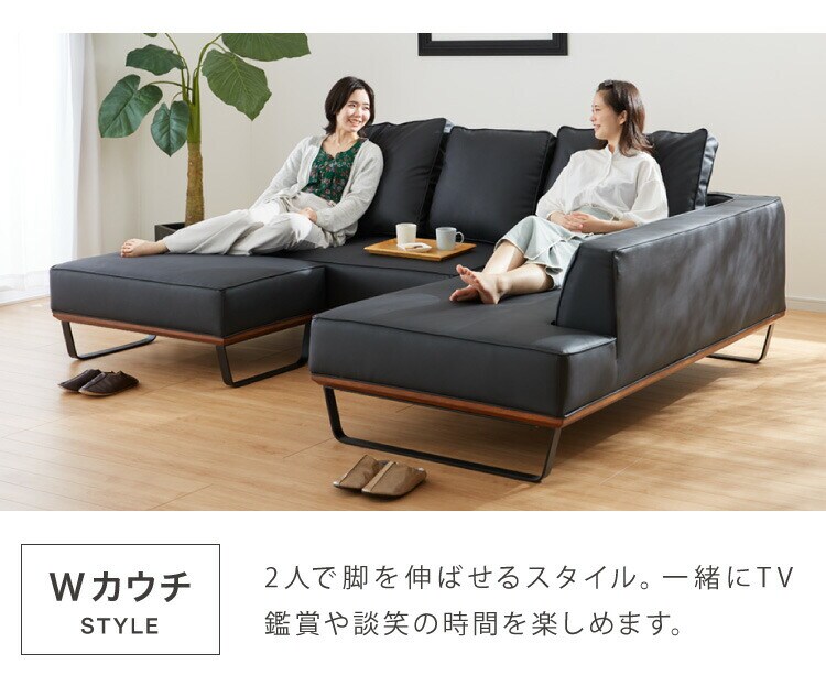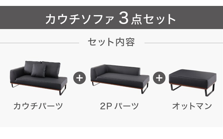 ソファ カウチソファー l字 合皮 ソファー 3人掛け 4人掛け 革 布 L型 スチール ローバック 三人掛け 高級 モダン 3P 大きい カウチソファ コーナーソファ 黒 ブラック【送料無料】