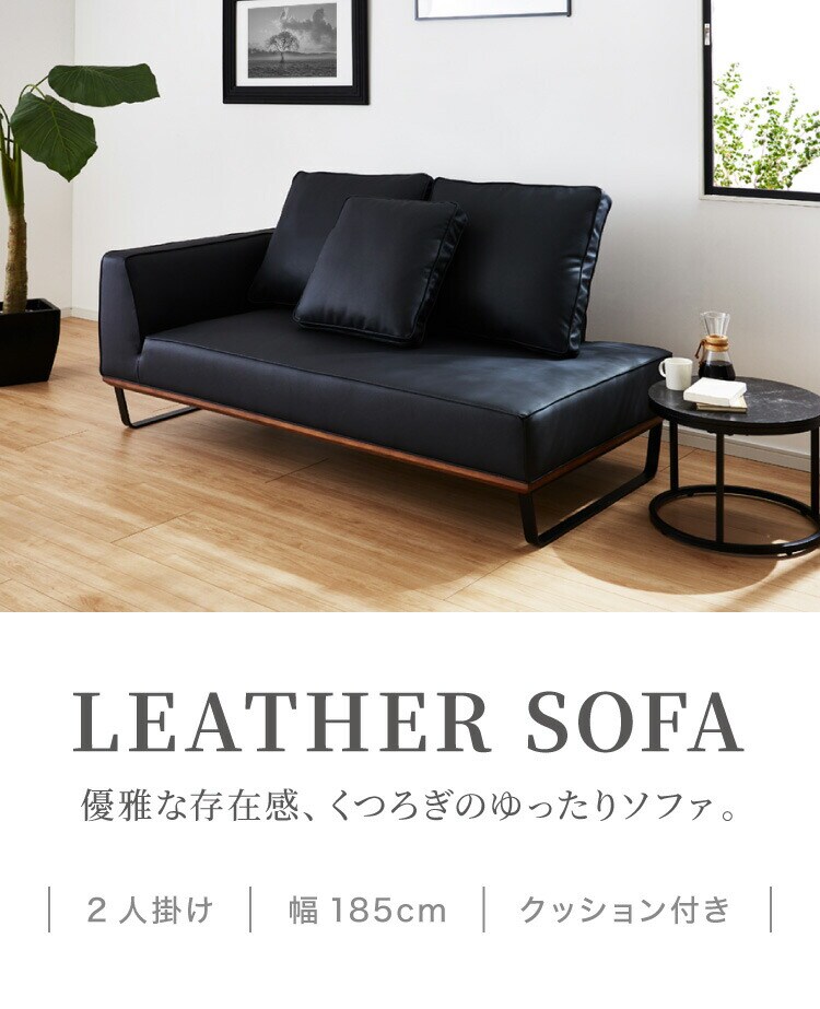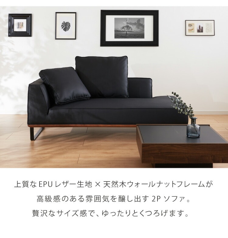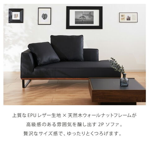 ソファ カウチソファ ソファー sofa 185 コーナーソファ 合皮 EPU ソファー 2人掛け 二人掛け ブラック 黒 ウォールナット スチール ローバック【送料無料】