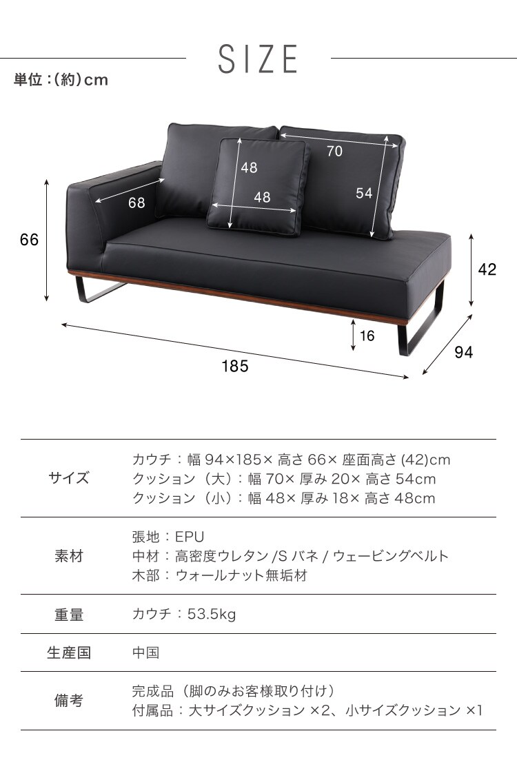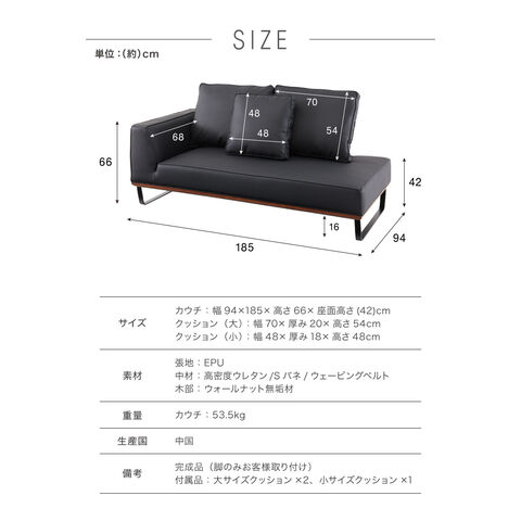[カウチ]幅94×185×高さ66×座面高さ(42)cm