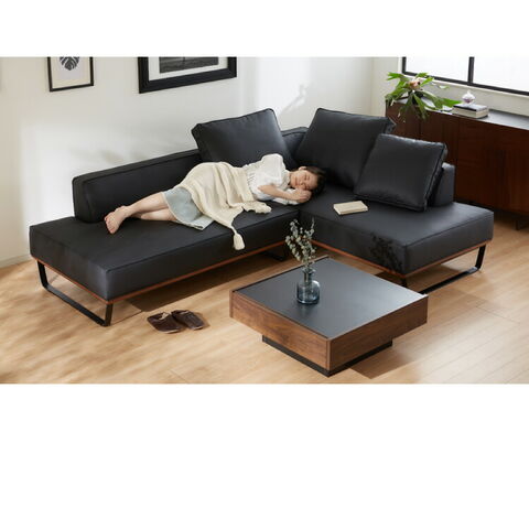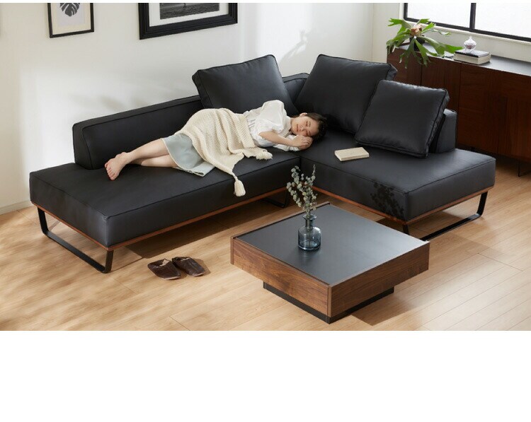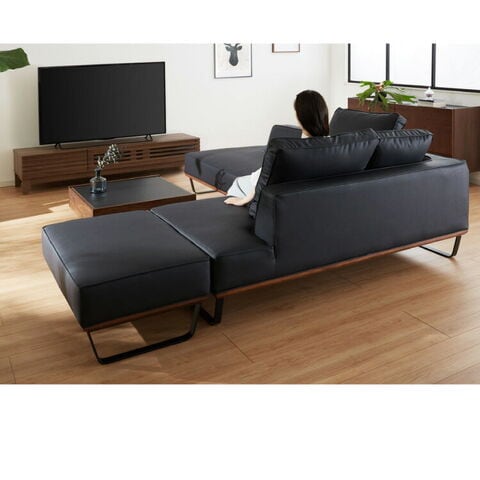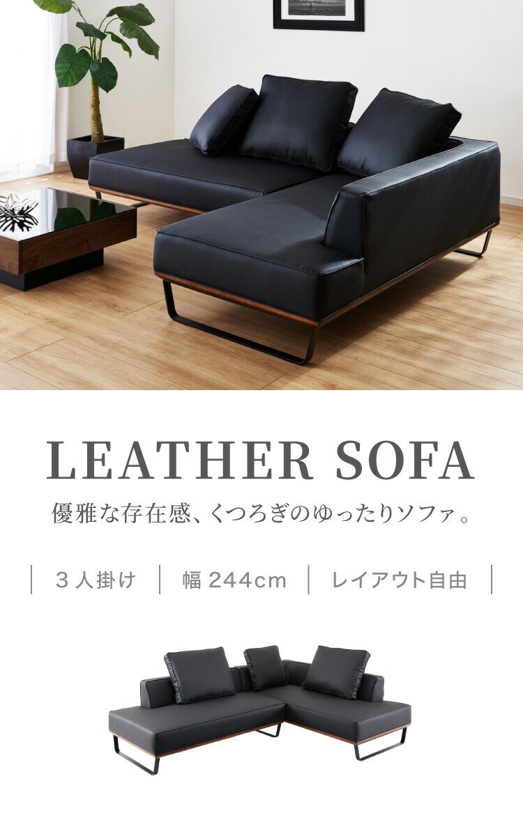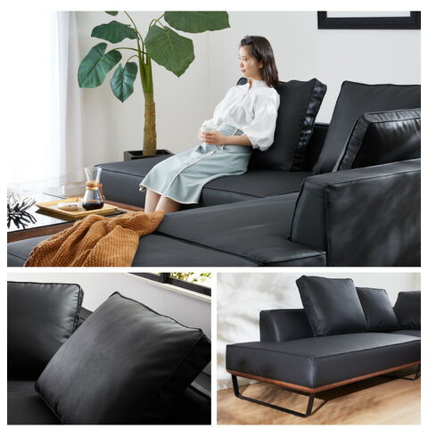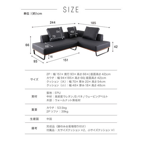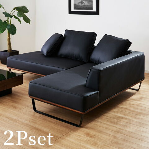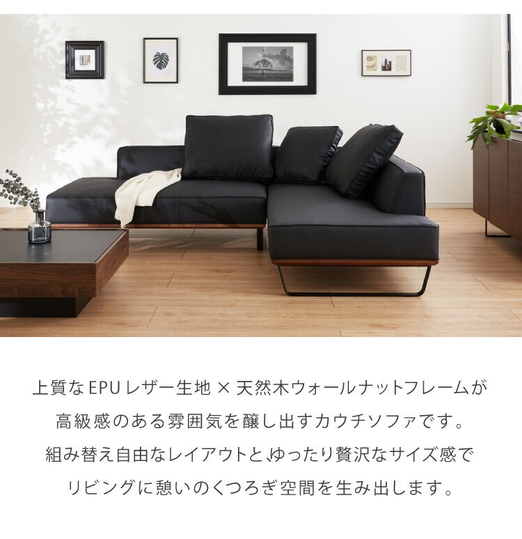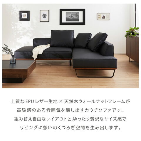 ソファ カウチソファ l字 コーデュロイ ソファー コーナーソファ 3人掛け 4人掛け 合皮 EPU ブラック 黒 L型 スチール ローバック ウォールナット 三人掛け【送料無料】