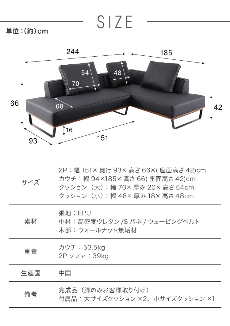 [カウチ]幅94×185×高さ66(座面高さ42)cm