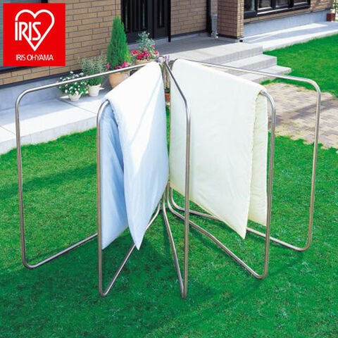 軽くてサビやキズに強いオールステンレス製のふとん干しです。広げて干せる、布団を掛けやすい扇形タイプです。使用しない時は折りたたんでコンパクトに収納できます。φ25mmの太いパイプを使用しているので、安定感があります。