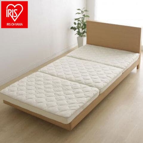 ベッドはもちろん、床に1枚でもお使いいただけるボリュームタイプのマットレスです。エアロキューブとウレタンフォームの2層構造で、硬さを選べるリバーシブルタイプです。エアロキューブの反発力とウレタンフォームの柔かさを併せ持ち、しっかりとした寝心地を楽しめます。ウレタンフォームは通気性の良い無膜ウレタン「ムマック」を使用しています。コンパクトに収納できる三つ折りタイプです。