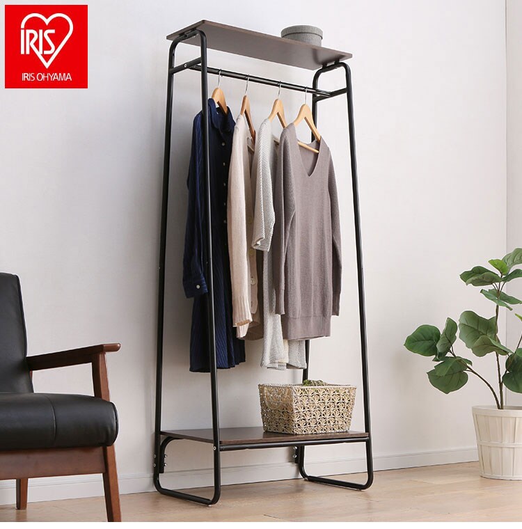 シワなく衣類を収納するのに適したデザイン性のあるスタイルハンガーです。ハンガーパイプには衣類をかけて収納し、棚板には帽子やカバンなどのファッション小物の収納ができます。