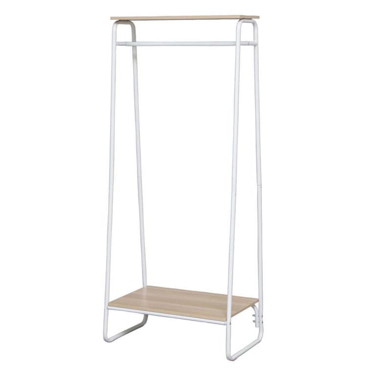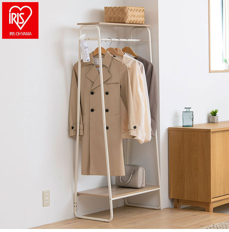 シワなく衣類を収納するのに適したデザイン性のあるスタイルハンガーです。ハンガーパイプには衣類をかけて収納し、棚板には帽子やカバンなどのファッション小物の収納ができます。