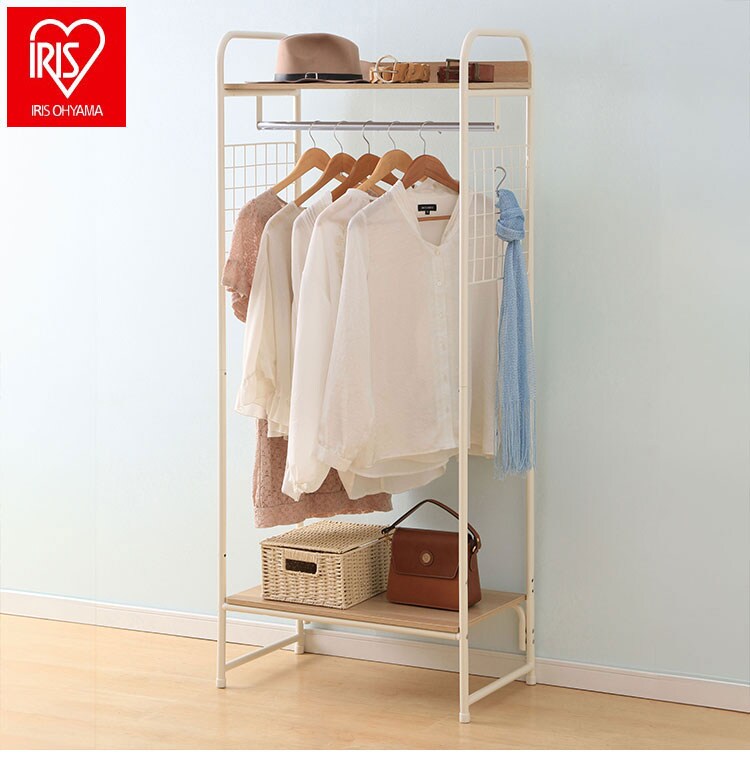 シワなく衣類を収納するのに適したデザイン性のあるスタイルハンガーです。棚板には帽子やカバンなどのファッション小物の収納ができ、サイドのメッシュパネルは、フックなどを利用しカバンやストール、アクセサリーなどを収納できます。
