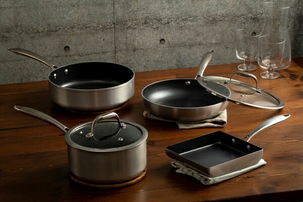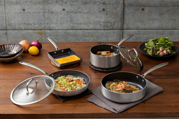 ステンレスやコッパーのような風合いで高級感のあるフライパン・鍋のセットです。ダイヤモンドコーティングを使用し、こびりつきにくく、丈夫で長持ちします。ダイヤモンドコーティングとは、人工ダイヤモンドを細かい粒子状にしてふっ素樹脂コーティングに配合したものです。汚れがつきにくいので、お手入れも簡単です。外側はツヤのあるクリアコーティングです。
