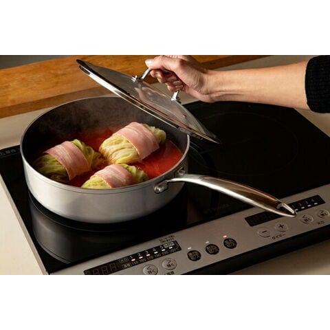 基本仕様 セット内容 フライパン20・24cm、マルチパン26cm、片手なべ18cm、両手なべ24cm、エッグパン、ガラスふた18・20・24cm・26cm 満水容量(約) フライパン20cm:1.2L、フライパン24cm:1.9L、マルチパン26cm:3.9L、片手なべ18cm:2.0L、両手なべ24cm:4.6L、エッグパン:0.8L 対応熱源 IH・ガスコンロ・ラジエントヒーター・オーブン・その他の電気ヒーター対応(※電子レンジでは使用できません。)