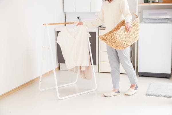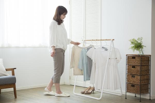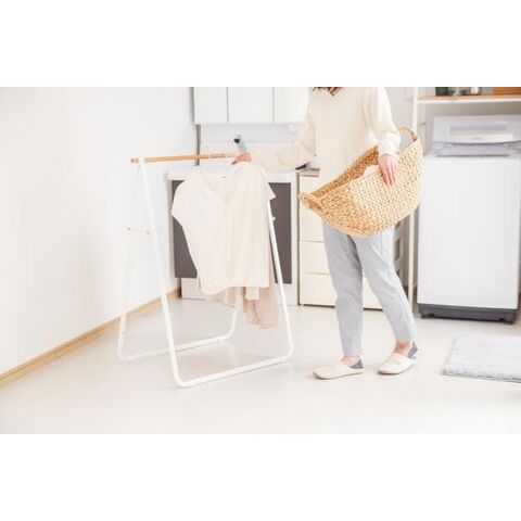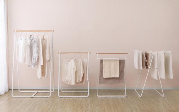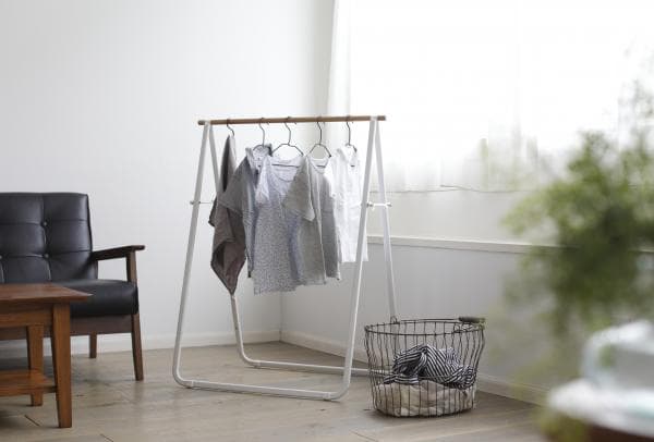 マットな質感のスチールパイプと温かみのある天然木の組み合わせで、お部屋に置いても圧迫感のないシンプルなデザインの室内物干しです。一人暮らしにぴったりのサイズです。またトップスやインナー、タオルや子供服を干すのにおすすめです。収納ハンガーとしても使用できます。使用しないときは折りたたんで、コンパクトに収納が可能です。簡単に組み立てができます。