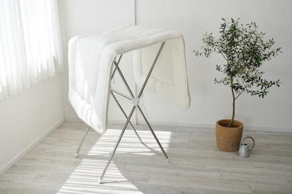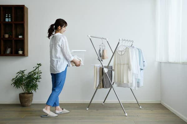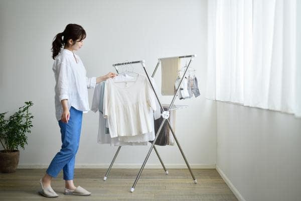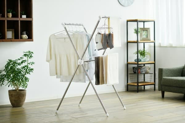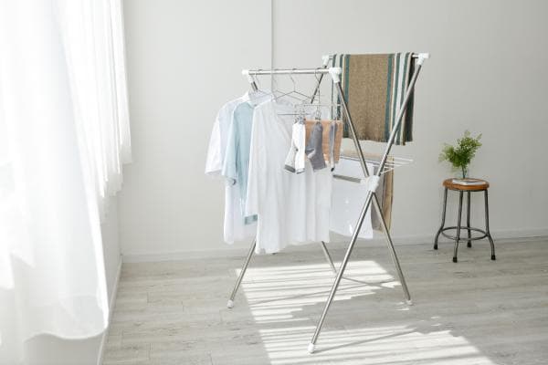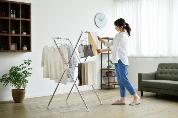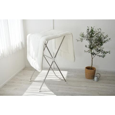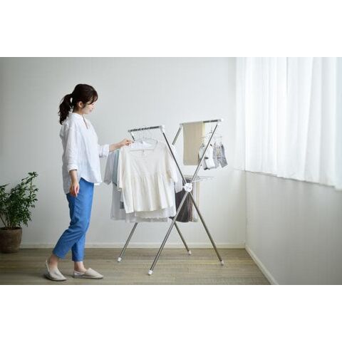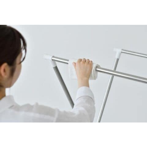 工具不要で、はめこむだけで簡単に組み立てができる物干しです。ステンレス巻きスチールパイプを採用しているので、丈夫でサビに強く長くお使いいただけます。使用しないときは、折りたたんでコンパクトに収納できます。